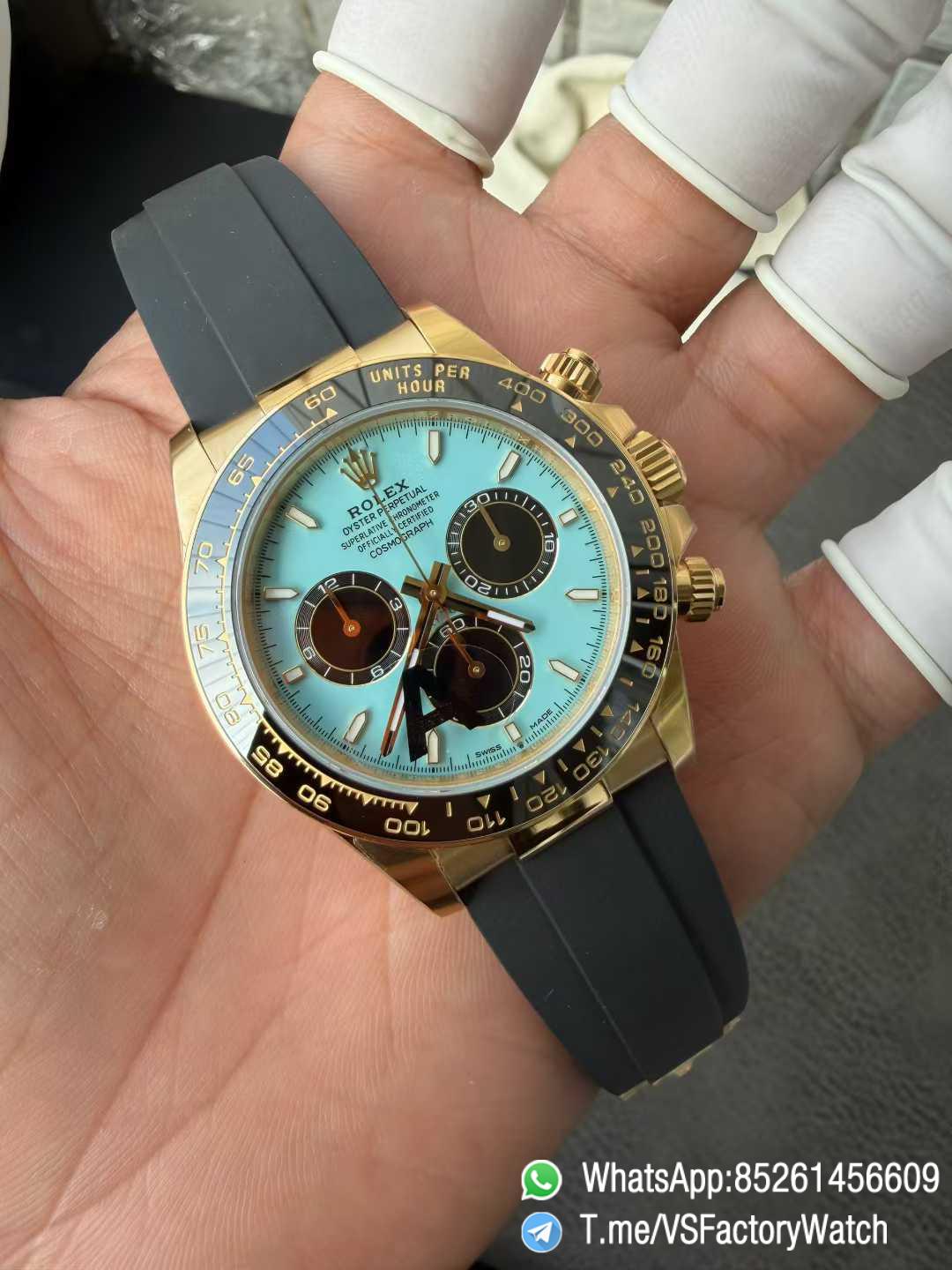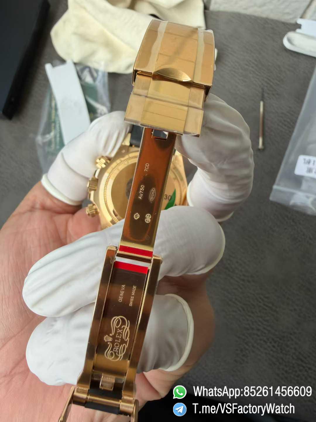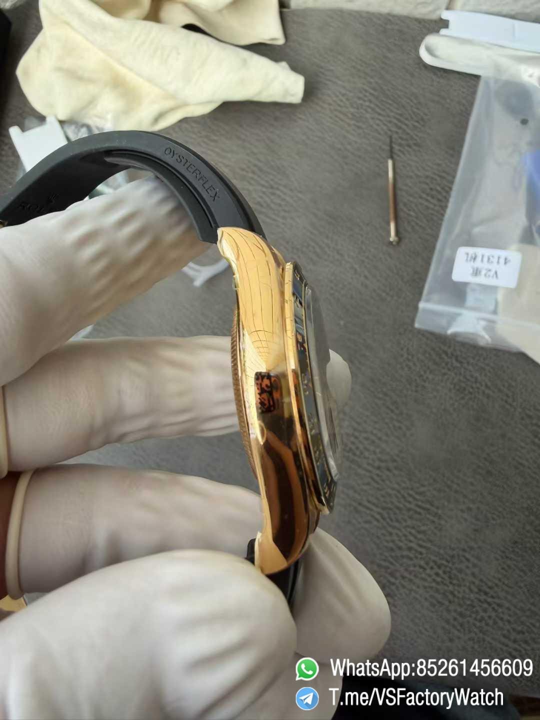 ● Case: 18k yellow gold plated 1:1 replicated solid 904L stainless steel case, Cu-W metal to increase watch weight, the whole watch head is about 98.5g, almost the same as genuine watch head weight 98.8g;