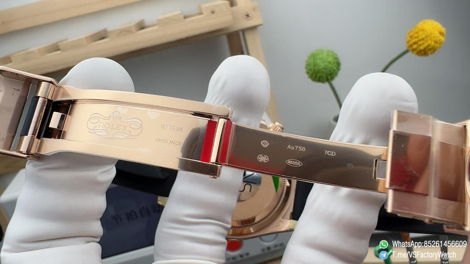 ● Case: 18k rose gold plated 1:1 replicated solid 904L stainless steel case, Cu-W metal to increase watch weight, the whole watch head is about 98.5g, almost the same as genuine watch head weight 98.8g;
