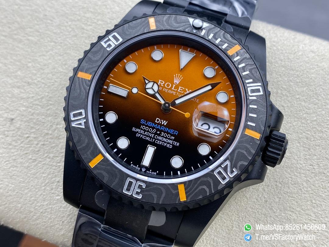 VS Factory Watch | VSF Rolex DiW Submariner | 40mm | DLC Case | Black and orange Dial | Black Carbon Fiber Bezel | DLC Bracelet | Super Clone DanDong 3135 Movement