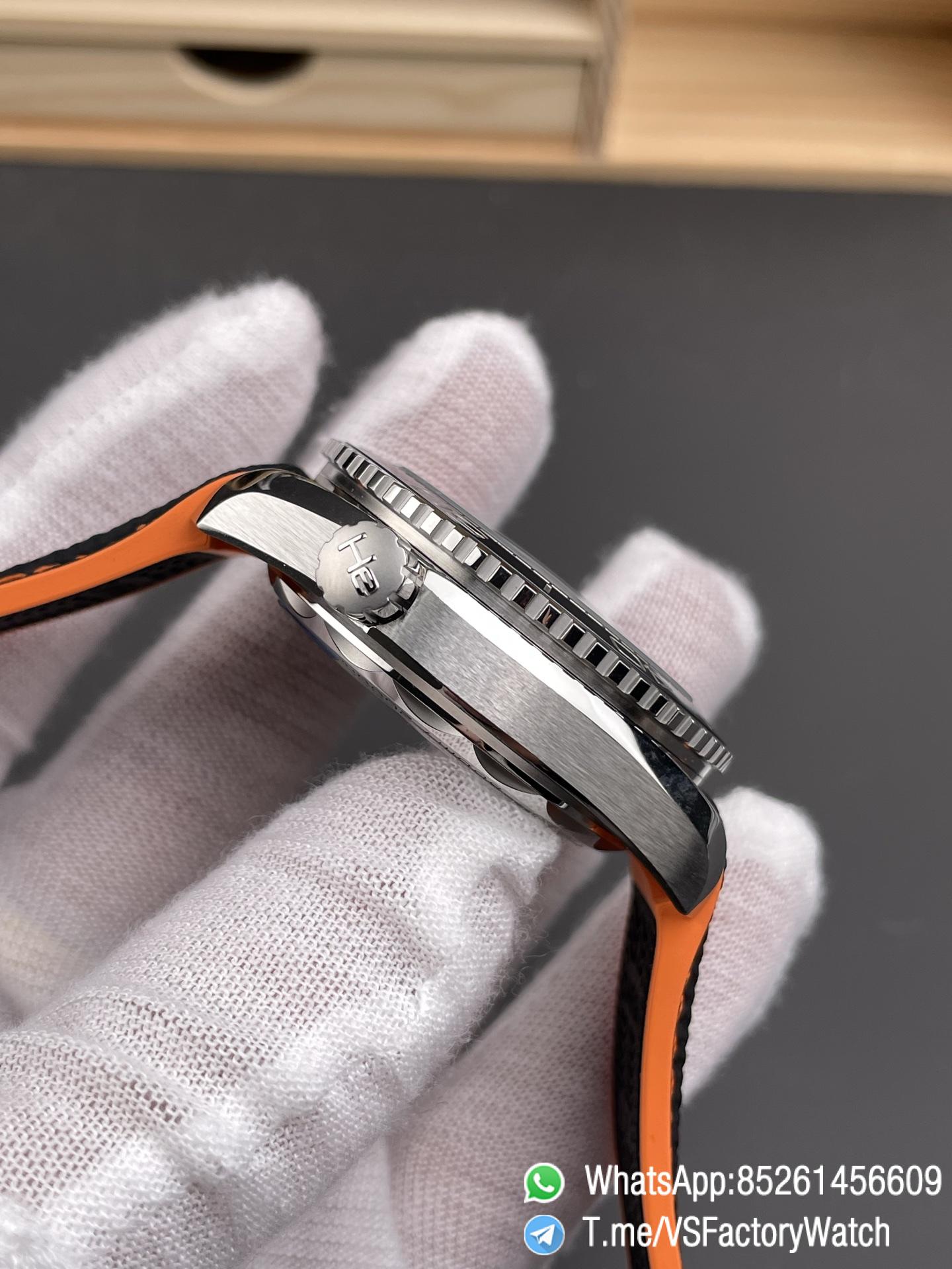● Bezel: Updated uni-directional rotating liquidmetal bezel with quarter orange index, same as genuine;