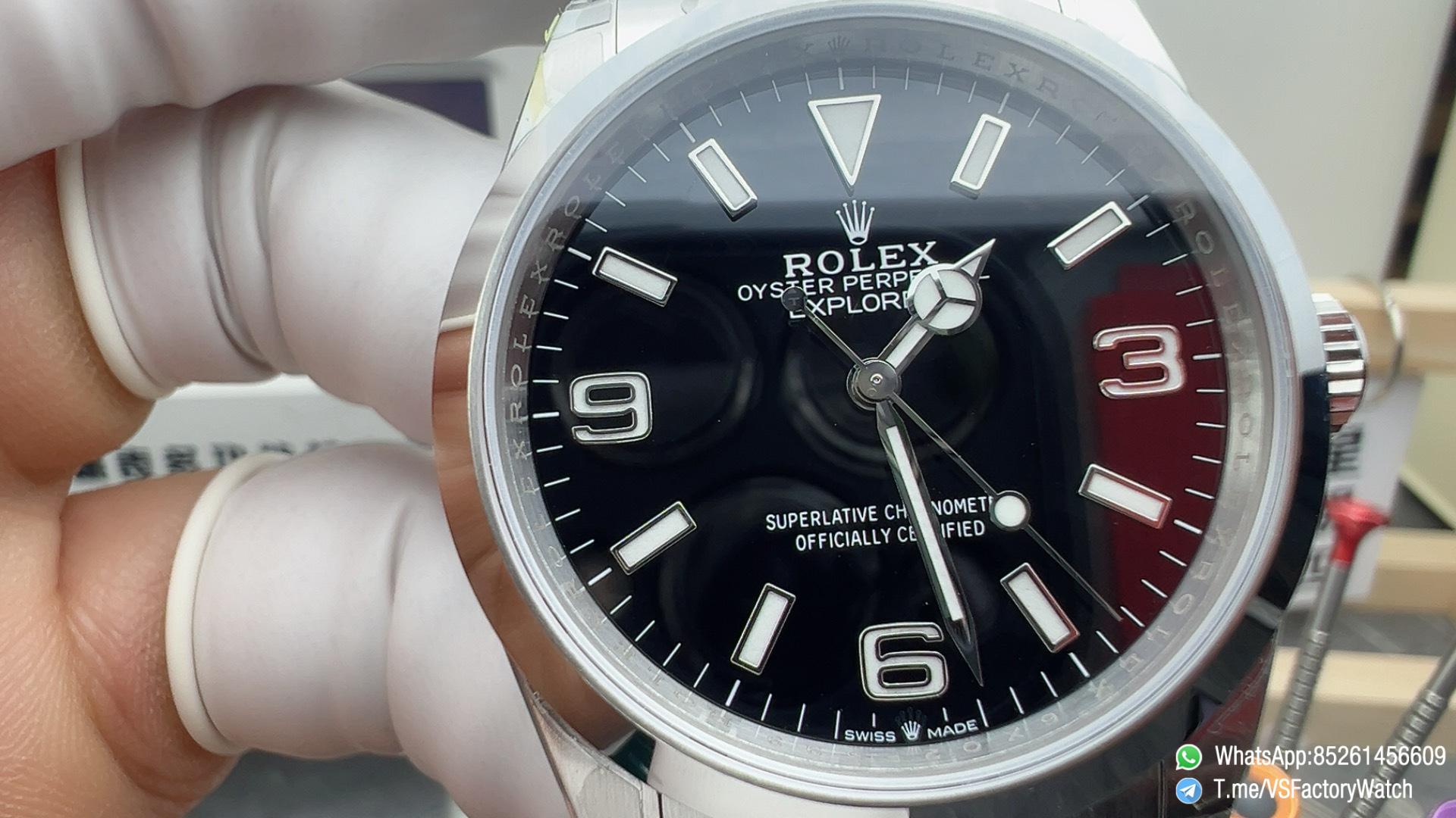 VS Factory Watch | Rolex Explorer 36 | Reference 124270-0001 | 904L Steel Smooth Bezel | 904L Stainless Steel Case | Black Dial with Luminous Stick and Number 3,6 and 9 Hour Markers and Luminous Hands in Correct Blue Color | 904L Stainless Steel Oyster Bracelet  | Super Clone DanDong 3230 Movement | About 70 Hours Power Reserve