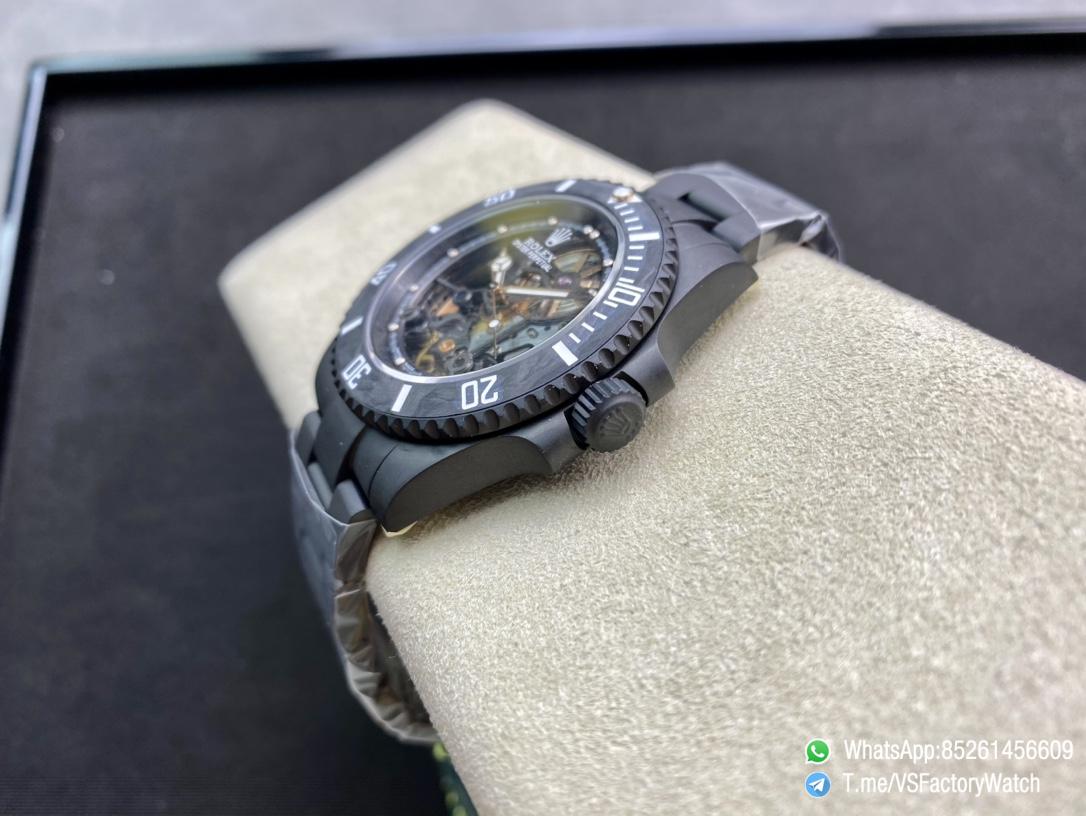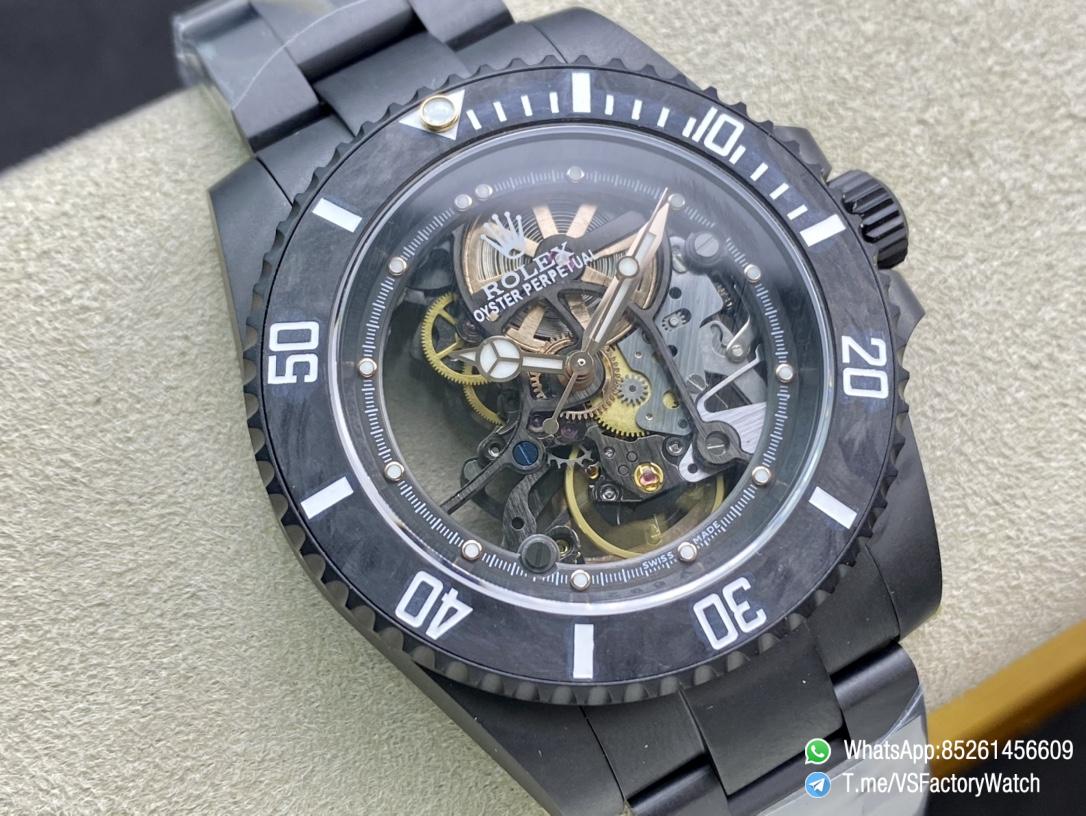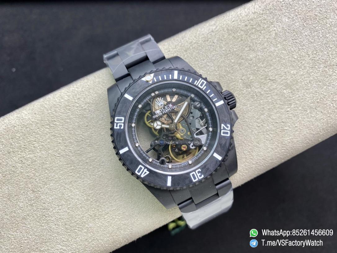 ● Bezel: Uni-directional rotating black carbon fiber bezel;